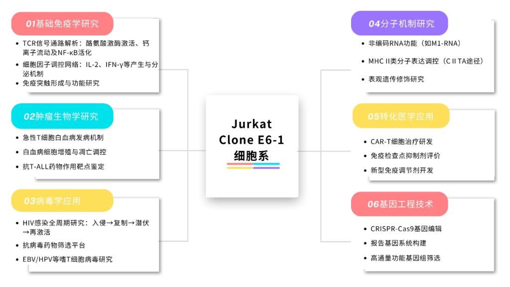 The Jurkat Clone E6-1 cell line was born in the 1970s and was derived from the peripheral blood of a 14-year-old patient with acute T lymphoblastic leukemia (T-ALL). As an immortal human T lymphocyte line, it has the following unique advantages: