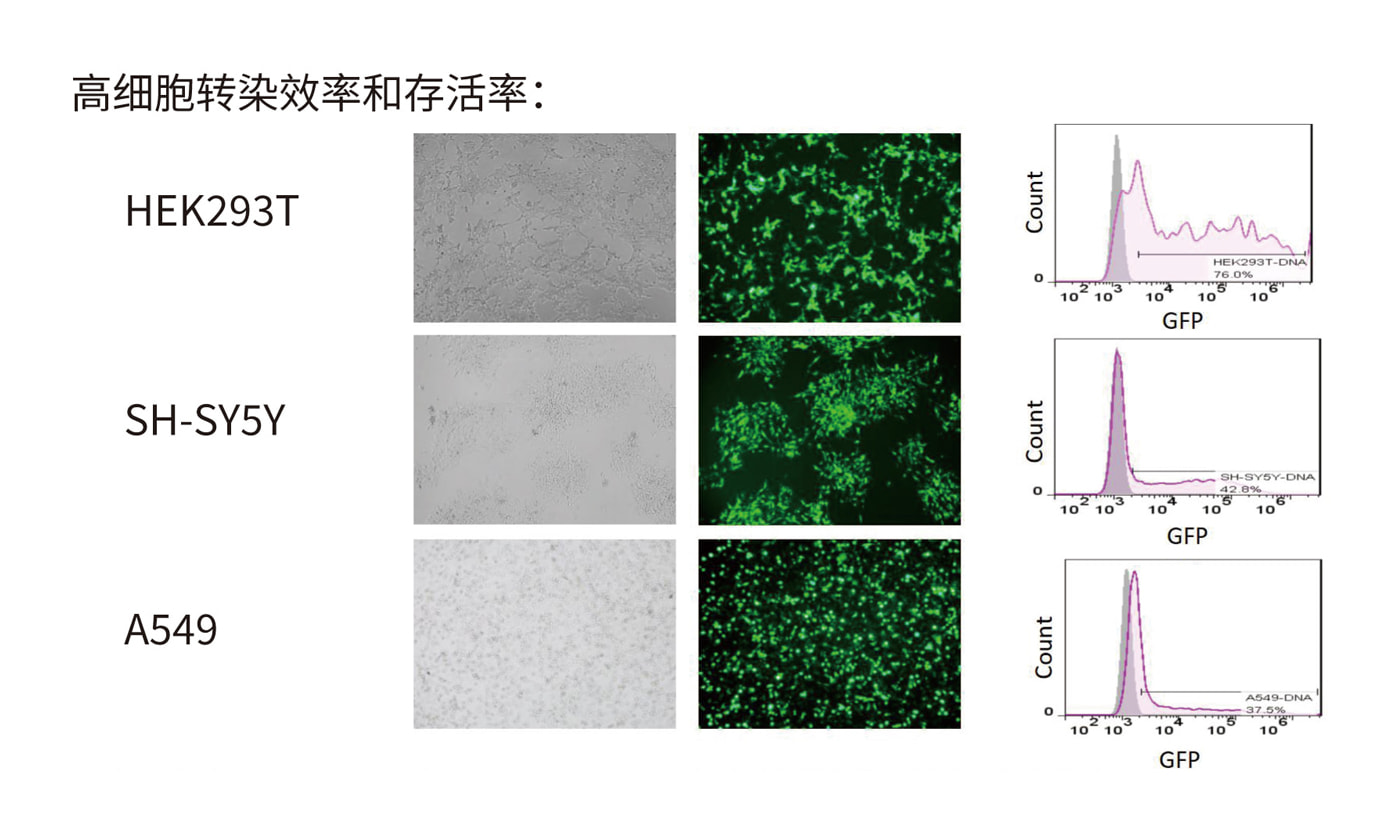 Cells were transfected with GFP DNA using UniquePOKE®, and cell viability and transfection efficiency were assessed 24–48 hours post-transfection.