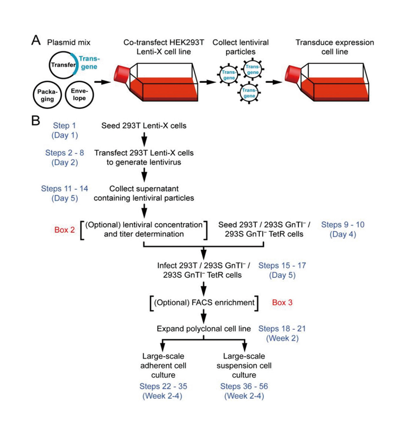 Mammalian cells transduced with lentivirus can rapidly produce high levels of soluble and membrane proteins.
